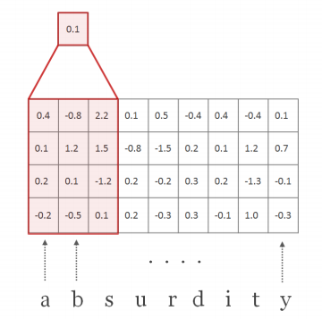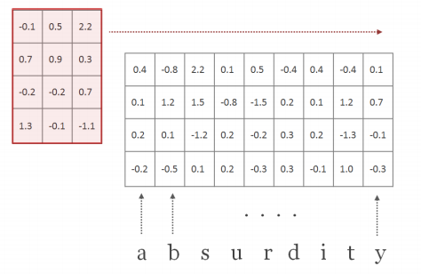 d : the dimensionality of character embeddings | 논문에 쓰인 d는 15차원, 만약에 word k = ['k','n','o','w']라면 길이 l(small L)=4, embedding dimension d는 15로, 'know'에 대한 character-level embedding vector의 차원은 15 by 4의 column vector (또는 4 by 15의 row vector) (assumption) embedding시의 vector initialization은 random하게 준다. |
