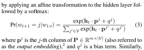 P : output embedding matrix (p : output embedding)