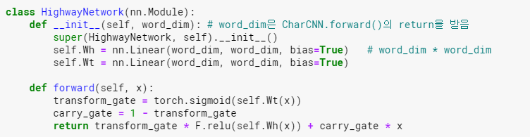 여기서 x는 아마도 CharCNN의 return인 x (논문에서는 y)