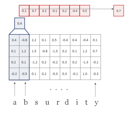 | d : the dimensionality of character embeddings | 논문에 쓰인 d는 15차원, 만약에 word k = ['k','n','o','w']라면 길이 l(small L)=4, embedding dimension d는 15로, 'know'에 대한 character-level embedding vector의 차원은 15 by 4의 column vector (또는 4 by 15의 row vector) (assumption) embedding시의 vector initialization은 random하게 준다.  |
