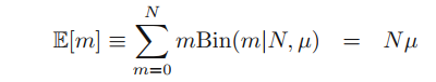 아래의 variance는 직관적으로 보면 Bin(m|N,μ)가 확률 변수의 분포니까