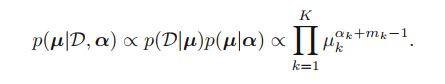 p(μ|α)는 Dirichlet distribution으로, 다시 Dirichlet distribution의 형태인걸 볼 수 있다.