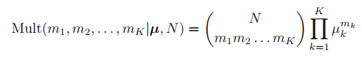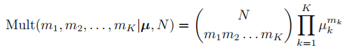 이제 위에서 소개한 multinomial distribution의 파라미터 {μ_(k)}를 위한 prior distribution의 family distribution을 소개한다.