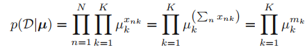 파라미터 μ에 의존하는, m1,...,m_(k)의 joint distribution을 생각해보자. p(D|μ)는 아래와 같으므로