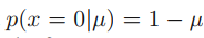 probability이므로 0 <= μ <= 1 이다. 그러므로 x = 0의 확률은 아래와 같다.