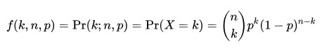 여기서 k는 x=1(헤드, 성공한 횟수)이고, 앞 부분 (n k)는 combination을 말한다.