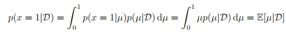 위의 수식에서의 normalization coef.는 베타 분포가 normalized 되어 있음을 확실하게 알 수 있다. 그러므로..