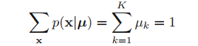 그리고 확률이기 때문에 (당연하게도) 각각의 mu_k는 0보다 크고, 전체 mu_k의 합은 1이 되는, 확률의 조건을 만족한다.