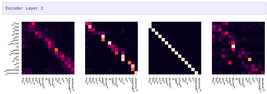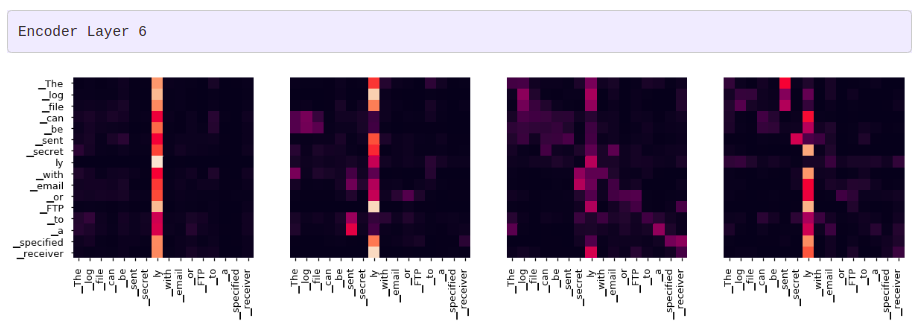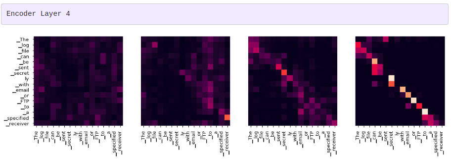 그리디 디코더 (greedy decoder)를 사용해 번역을 하더라도 꽤 괜찮아 보입니다. 더 나아가 어텐션의 각 레이어마다 무슨 일이 일어나는지를 시각화할 수 있습니다.