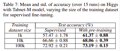 Table 7 shows that unsupervised pre-training significantly improves performance on the supervised classification task, especially in the regime where the unlabeled dataset is much larger than the labeled dataset.
