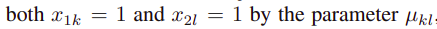 파라미터 mu_(kl)에 의한 각 값의 관측 확률 probability of observing 은 위와 같다.