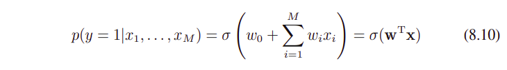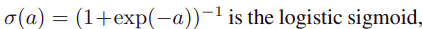 parent variables의 선형 컴비네이션 linear combination, 로지스틱 시그모이드 함수를 사용해서 conditional distribution을 심플하게 표현해보자.