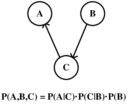 마지막으로 c는 a와 b, 둘로부터 links를 받으므로 p(c|a,b)가 된다.