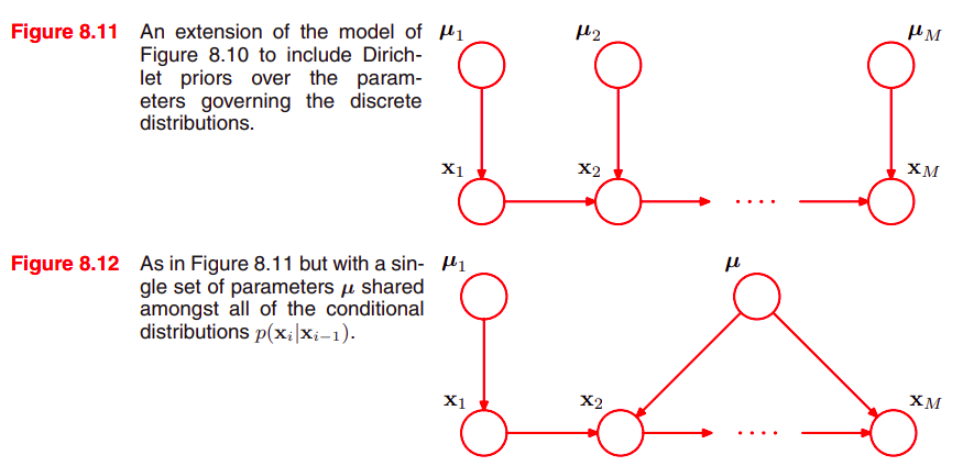graphical 관점에서 각 노드는 Dirichlet distribution을 표현하는 추가적인 parent가 필요하다. 이는 Figure (8.11)에서 볼 수 있다.