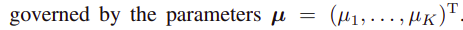 하나의 discrete variable x (K개의 가능한 states를 가진) 에 대한 확률 분포 p( x | μ )는 아래와 같이 주어진다.