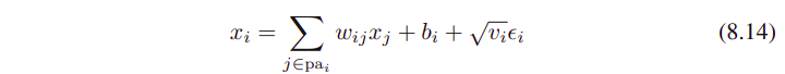 (8.11)의 parents nodes부분인 Pa_(i)에 루트를 씌운 v_i (표준편차 standard deviation 같다)와 epsilon_i의 곱이 추가되었음을 볼 수 있다.