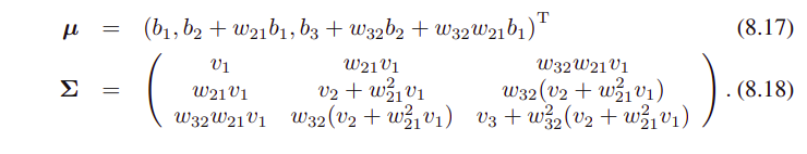 (8.15)와 (8.16)의 재귀적 관계에서, p(x)의 mean은 (b1, ... , b_(D)).T로 주어짐을 볼 수 있다.