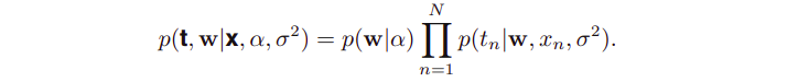 N개의 조건부 분포 conditional distributions p(t_(n) | w) n = 1,...,N 이다.