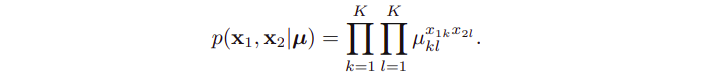 파라미터 mu_(kl)은 아래의 제약 사항을 만족시켜야 하기 때문에, 분포는 K^(2) - 1개의 파라미터들로 지배된다.