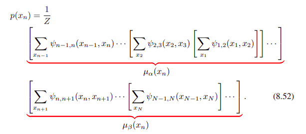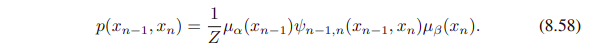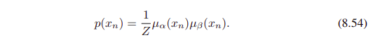 marginal $p(x_n)$을 normalization constant $Z$와 두 factors $\mu_\alpha$, $\mu_\beta$의 곱으로 decompose 할 수 있다.