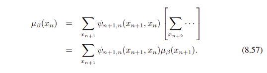 이제 chain에서 이웃하는 두 노드들을 위한 joint distribution $p(x_(n-1), x_n)$을 계산해보자.