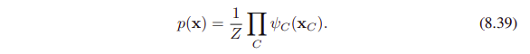 아래처럼 주어지는 undirected graph는 speical case로, maximal cliques에 대한 potential functions이다.