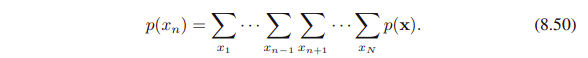 chain을 따라서 부분적으로, 어떤 노드 $x_n$에 대한 marginal distribution $p(x_n)$을 찾는, inference problem을 생각해보자. 이때 관측된 노드도 없다고 본다.