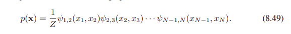 비슷하게 $x_1$에 대한 summation은 오직 potential $\psi_1,_2(x_1, x_2)$와만 관련이 있다. 그래서 $x_2$의 함수를 위해 분리할 수 있고, 이런식으로 쭈욱 간다.