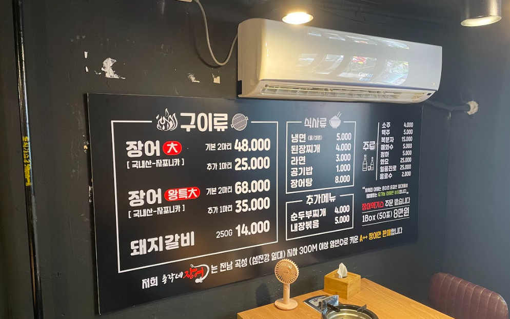 장어 2마리에 48,000원!!! 엄청 저렴하다.